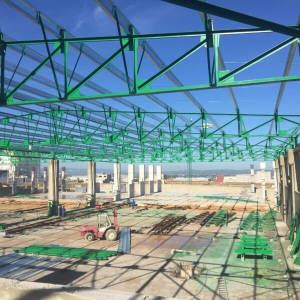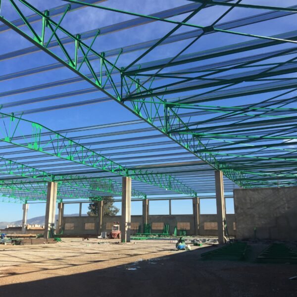 L'étude porte sur la construction d'une usine de tissage avec des poteaux espacés de 12m en béton armé et une toiture métallique de près de 40m de large. La charpente métallique sera de type treillis avec des pannes en laminé à froid. Le projet vise à créer un espace de production optimisé pour le tissage industriel, en tenant compte de la circulation, de la sécurité et de l'efficacité.