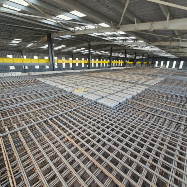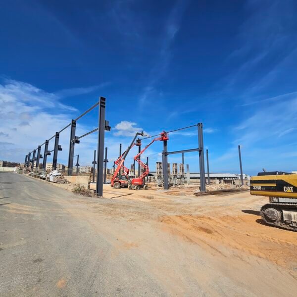 Étude technique et conception en charpente métallique et génie civil pour la réalisation d'une unité industrielle. L'ossature métallique, conçue avec un chemin de roulement intégré pour un pont roulant, sera constituée de profilés reconstitués soudés. Les planchers des bâtiments annexes seront des dalles réticulées en béton armé, avec des entraxes libres de 13 mètres.