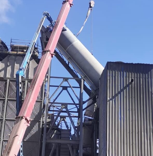 Le remplacement des gaines d'exhaure des fours F1 et F2, justifié par la dégradation de leur enveloppe, a été réalisé avec des gaines de section majorée pour améliorer la durabilité. L'étude de renforcement de la structure porteuse a été entreprise afin de garantir la reprise des charges additionnelles induites par cette modification.
