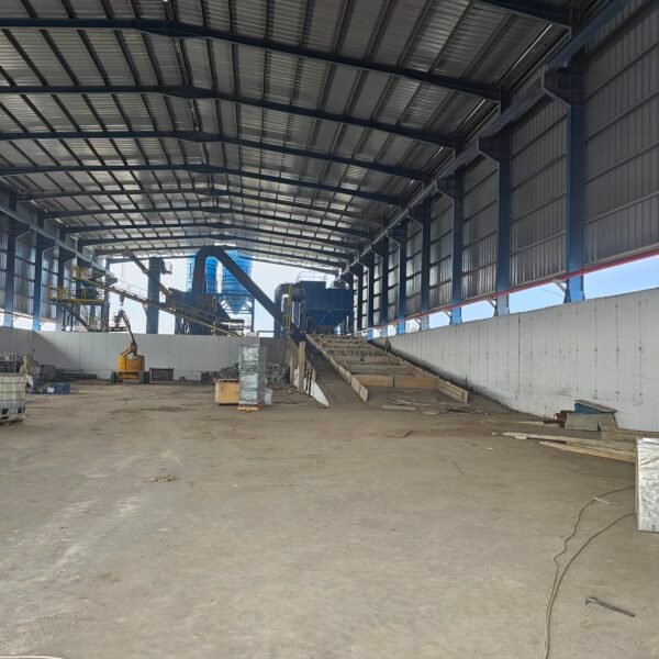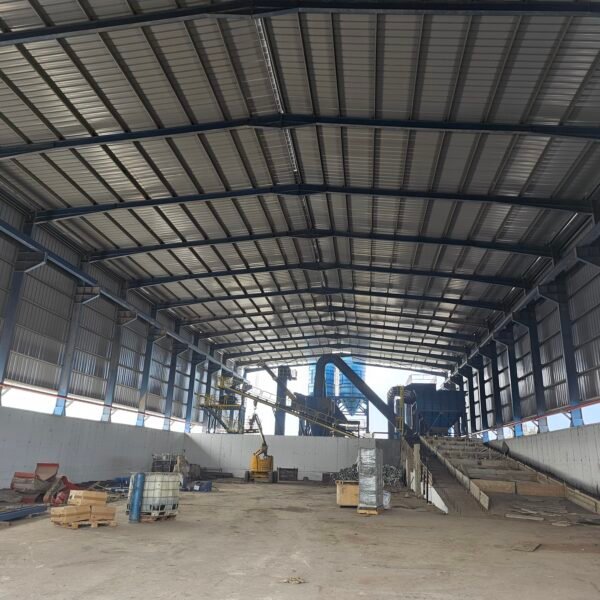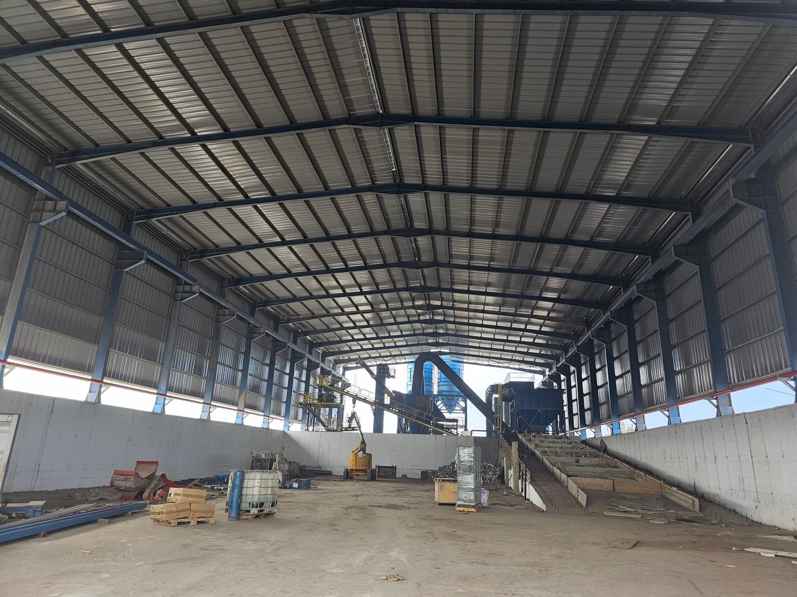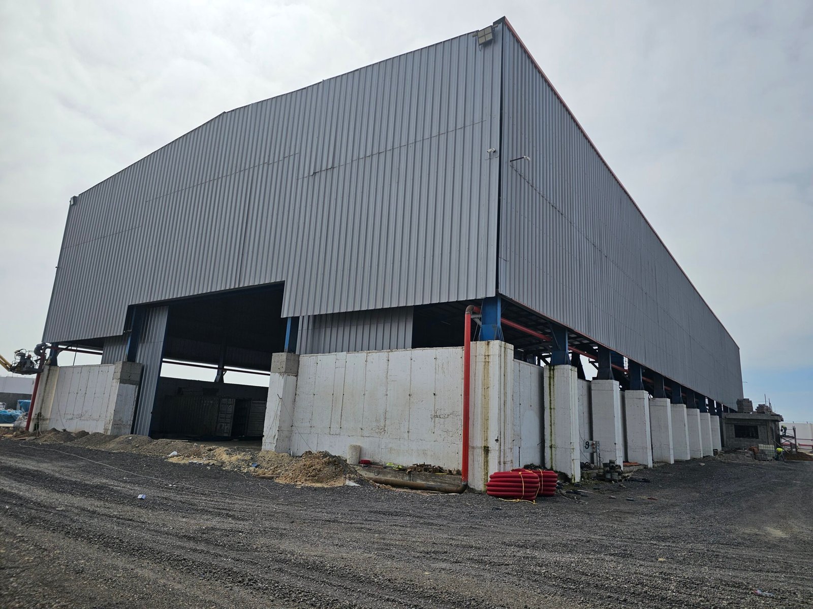 La superstructure se compose d'une charpente métallique à grande portée, structurée par des portiques bi-pente à âme pleine. Ces derniers sont renforcés par des jarrets au niveau des encastrements (liaisons poteaux-traverses) pour reprendre les moments de flexion sans recourir à des appuis intermédiaires, libérant ainsi intégralement le volume intérieur. La stabilité globale face aux effets climatiques est assurée par des contreventements en toiture (croix de Saint-André), l'enveloppe intégrant par ailleurs des translucides pour l'apport de lumière naturelle.